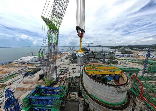 8月9日,我國自主三代核電華龍一號批量化工程——中核集團(tuán)漳州核電2號機(jī)組反應(yīng)堆壓力容器順利吊裝就位。這是該機(jī)組繼三臺蒸汽發(fā)生器吊裝成功之后,主設(shè)備預(yù)引入工作再次取得的重大進(jìn)展,為后續(xù)內(nèi)穹頂?shù)跹b及主管道焊接創(chuàng)造了先決條件。