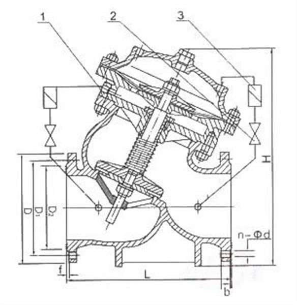 JD745X多功能水泵控制閥的接管系統(tǒng)采用調(diào)節(jié)閥控制,通過(guò)設(shè)定調(diào)節(jié)閥的開(kāi)度,可方便實(shí)現(xiàn)需要的各項(xiàng)控制參數(shù),如主閥的開(kāi)啟速度、緩閉速度等等。